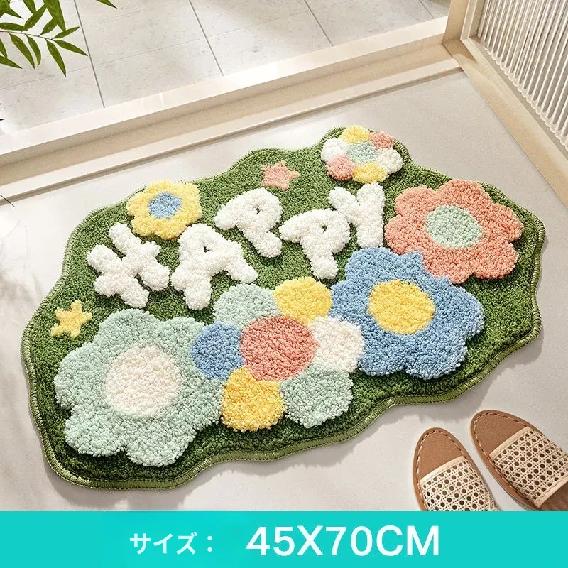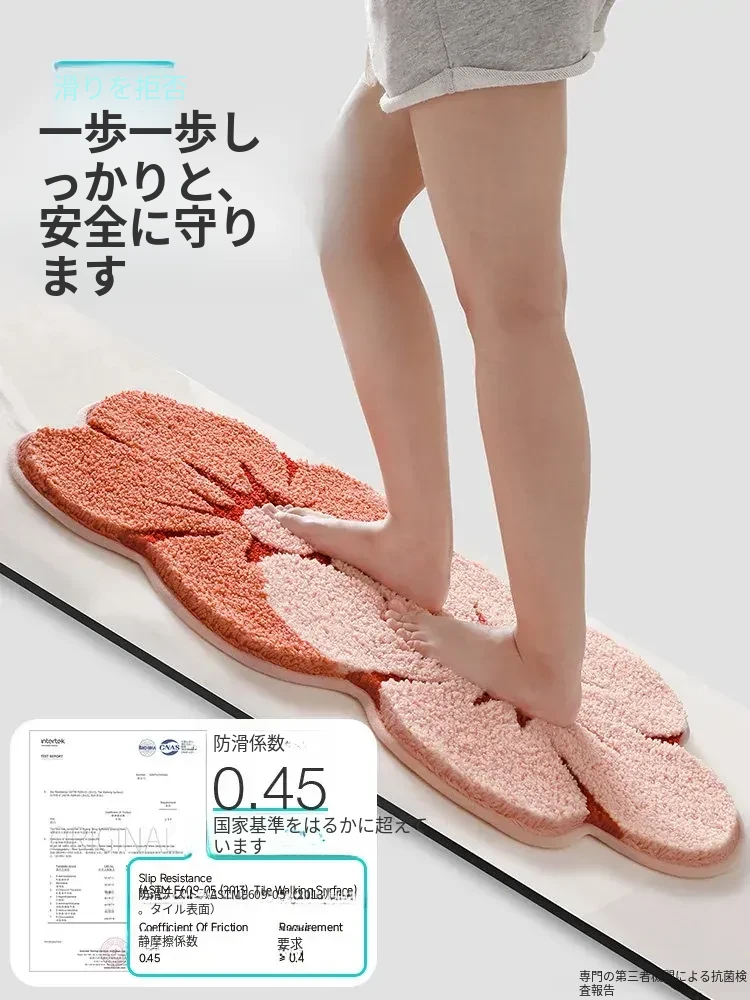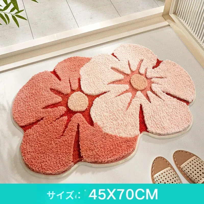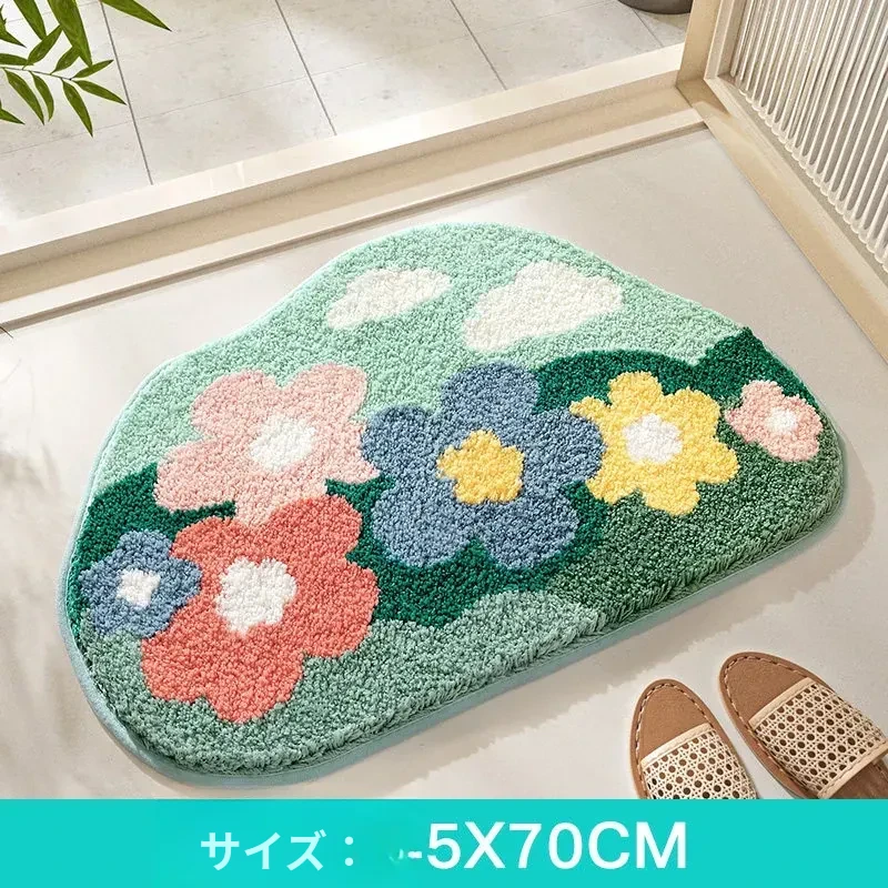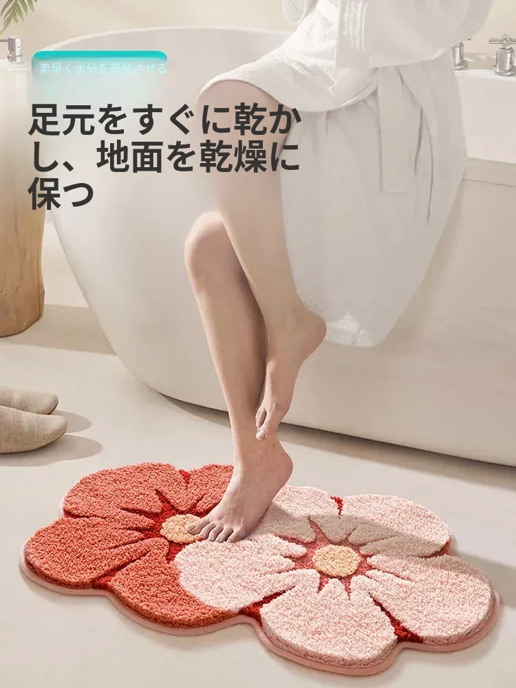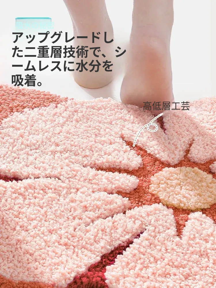 大江フラワー吸水マット - 家庭用トイレ・バスルームに最適な滑り止めマット!美しいデザインで、快適さと安全性を両立した洗面所用カーペット。あなたの空間を華やかに彩ります!