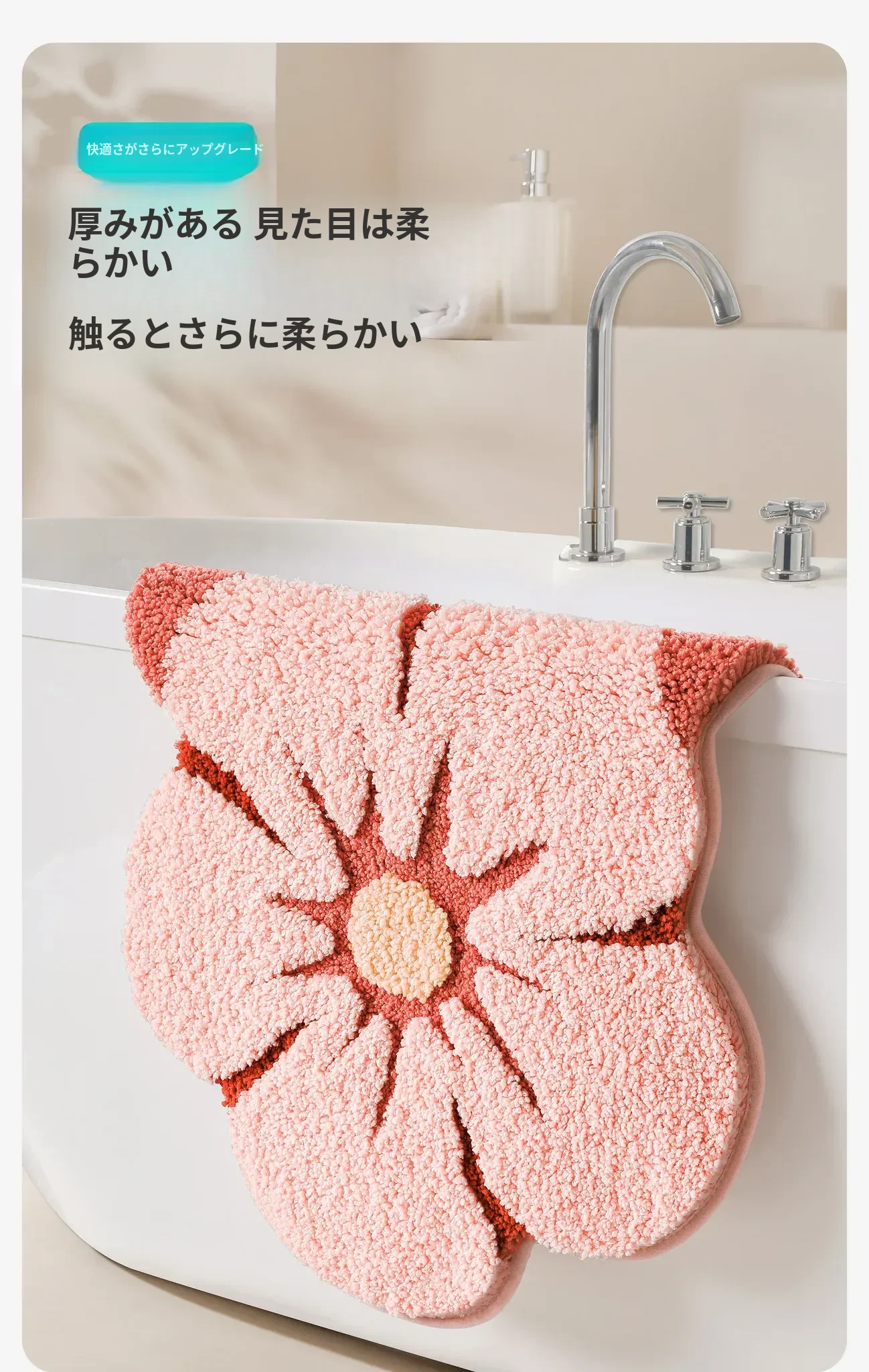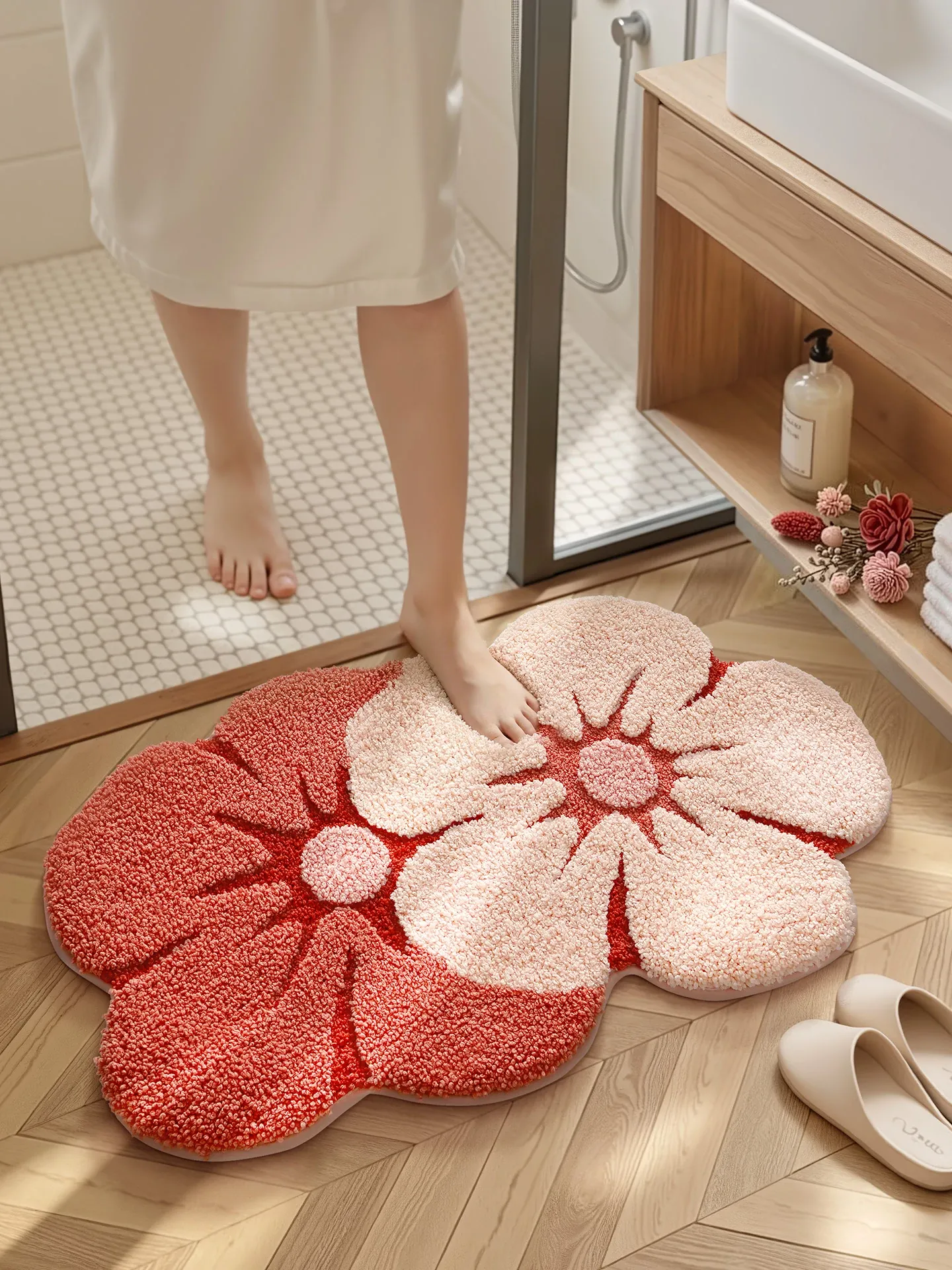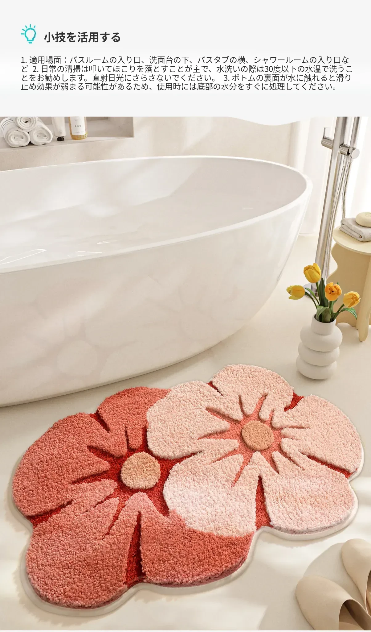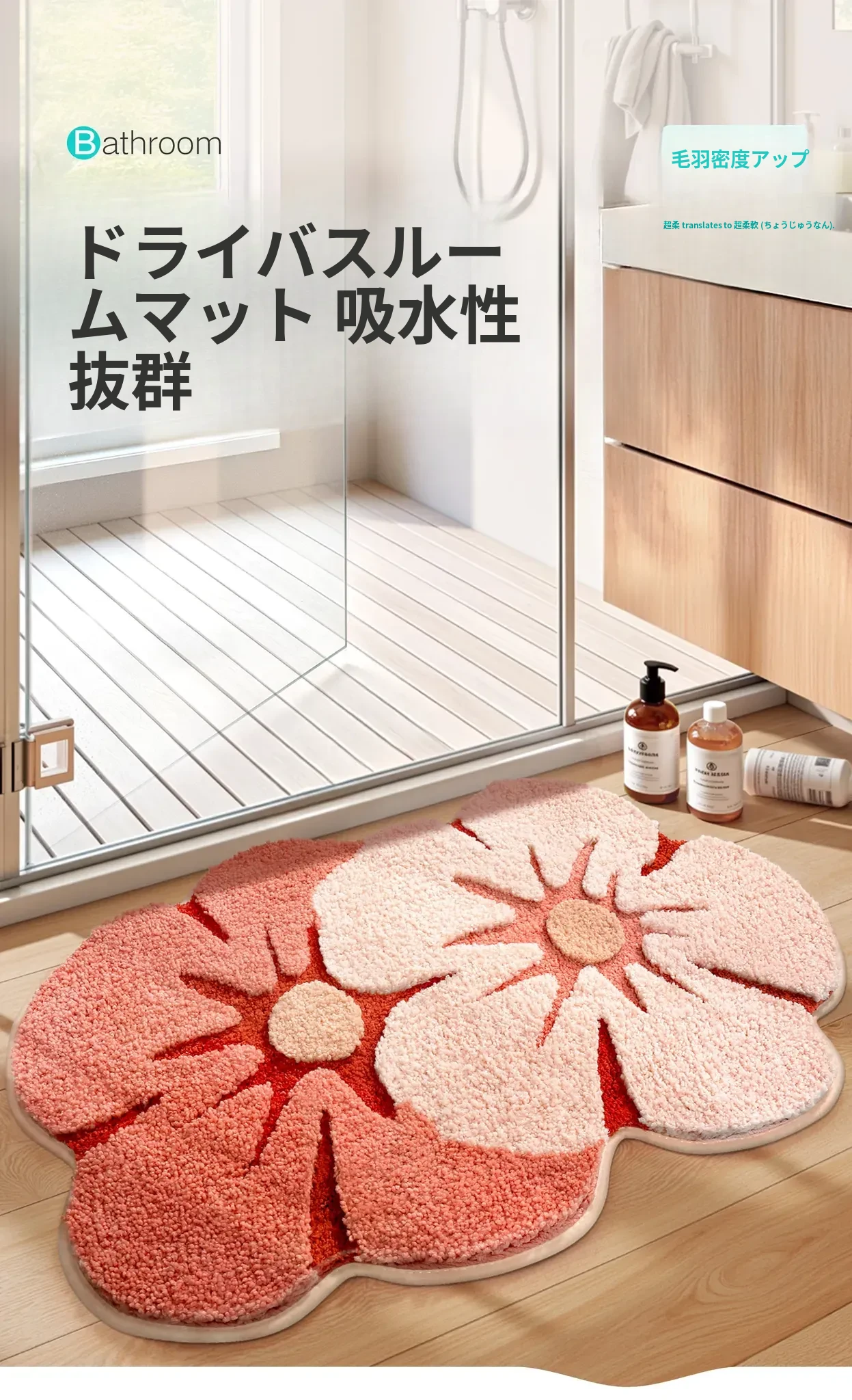大江フラワー吸水マット - 家庭用トイレ・バスルームに最適な滑り止めマット!美しいデザインで、快適さと安全性を両立した洗面所用カーペット。あなたの空間を華やかに彩ります!