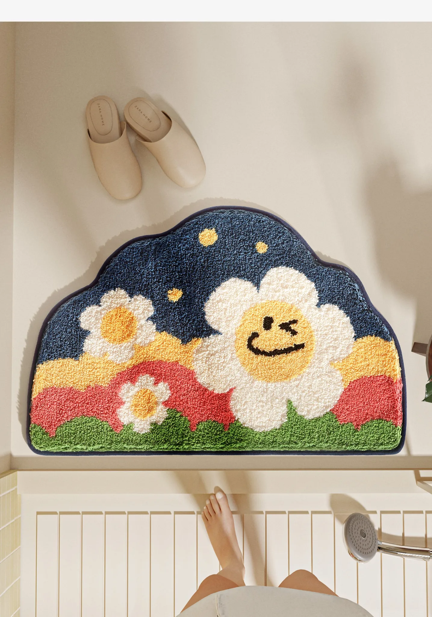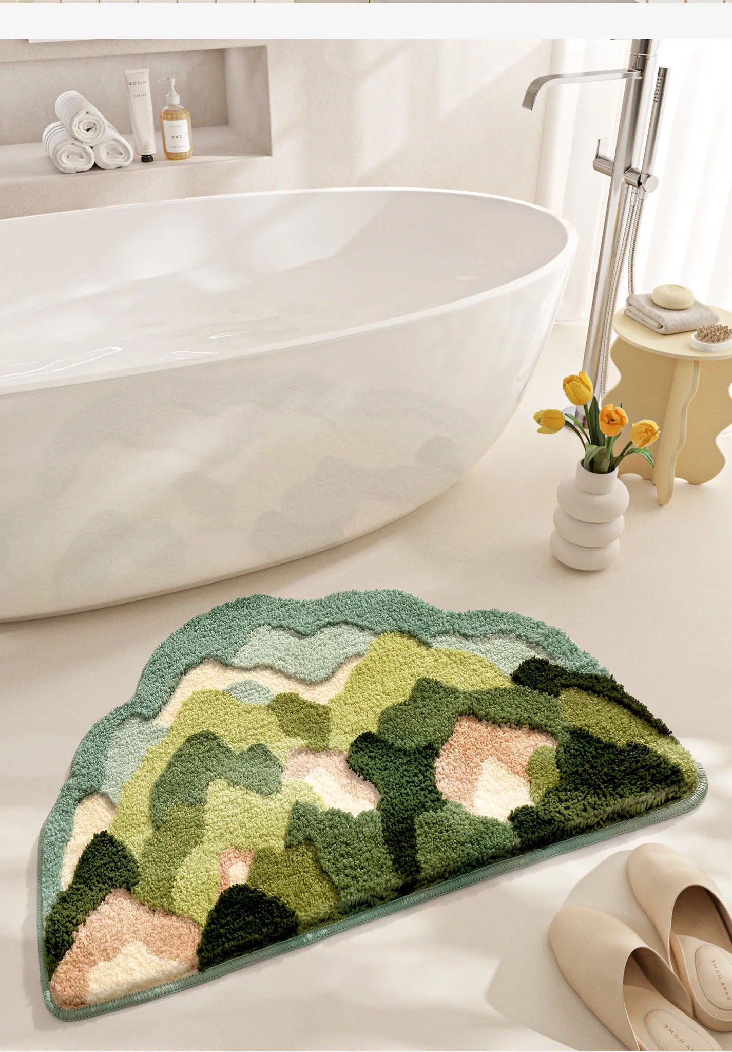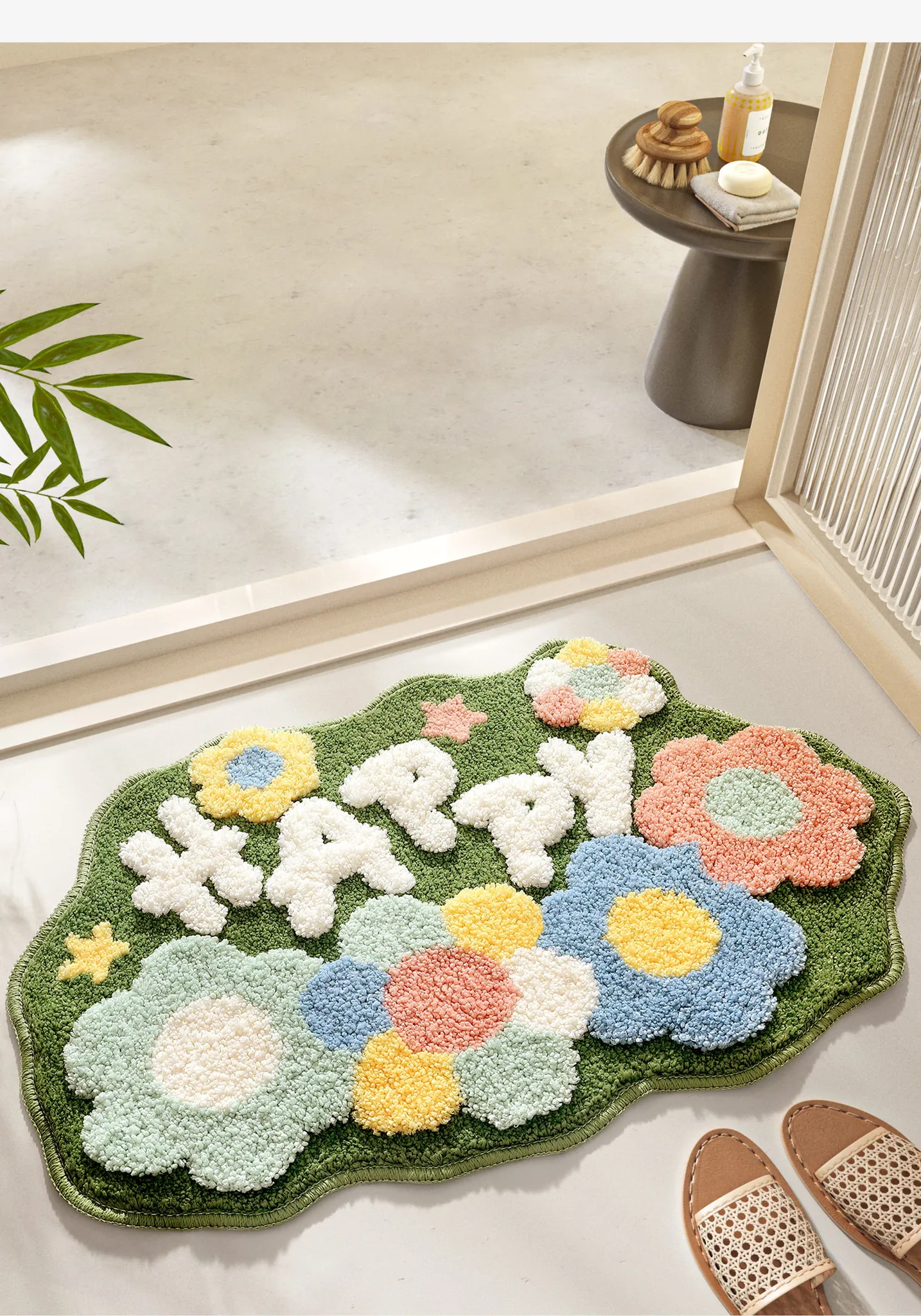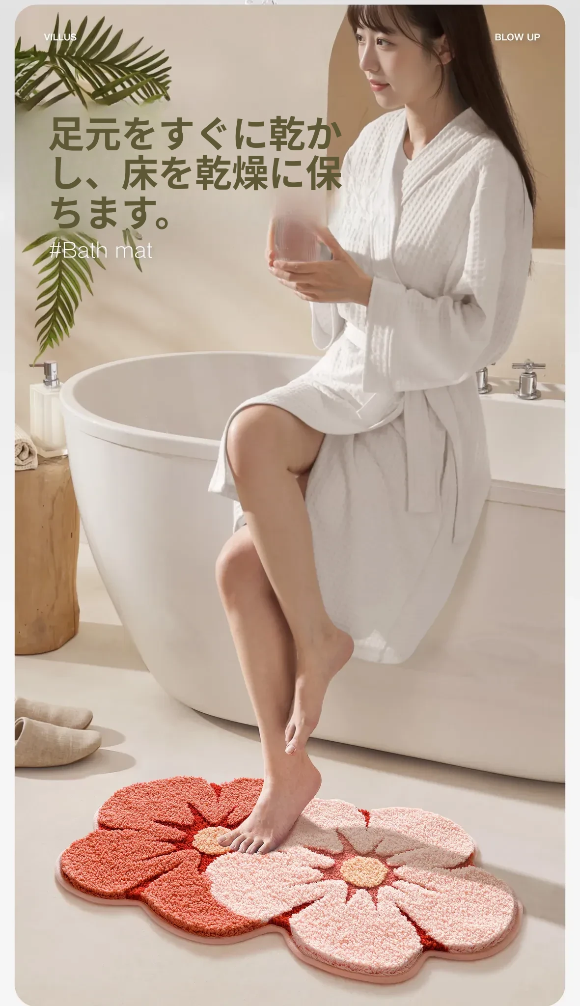 大江フラワー吸水マット - 家庭用トイレ・バスルームに最適な滑り止めマット!美しいデザインで、快適さと安全性を両立した洗面所用カーペット。あなたの空間を華やかに彩ります!