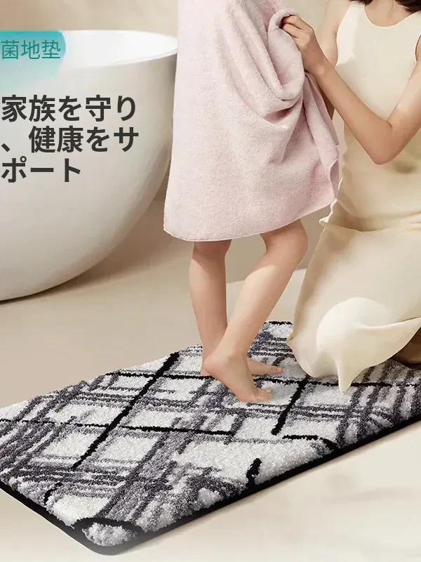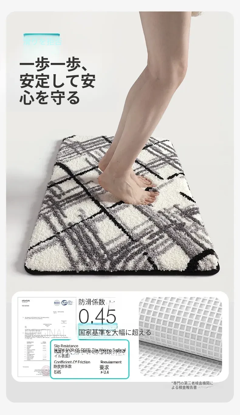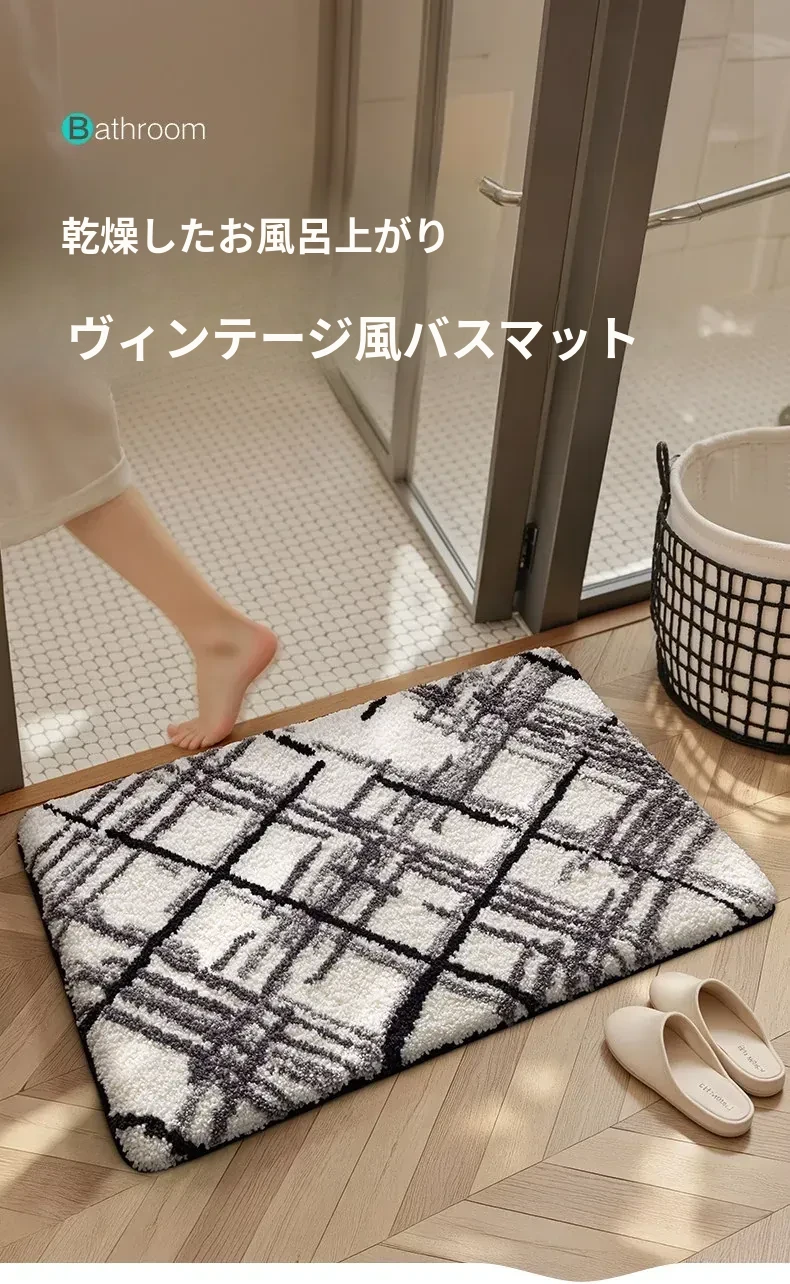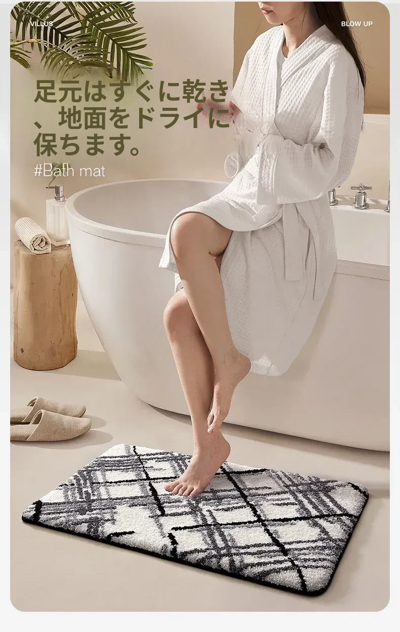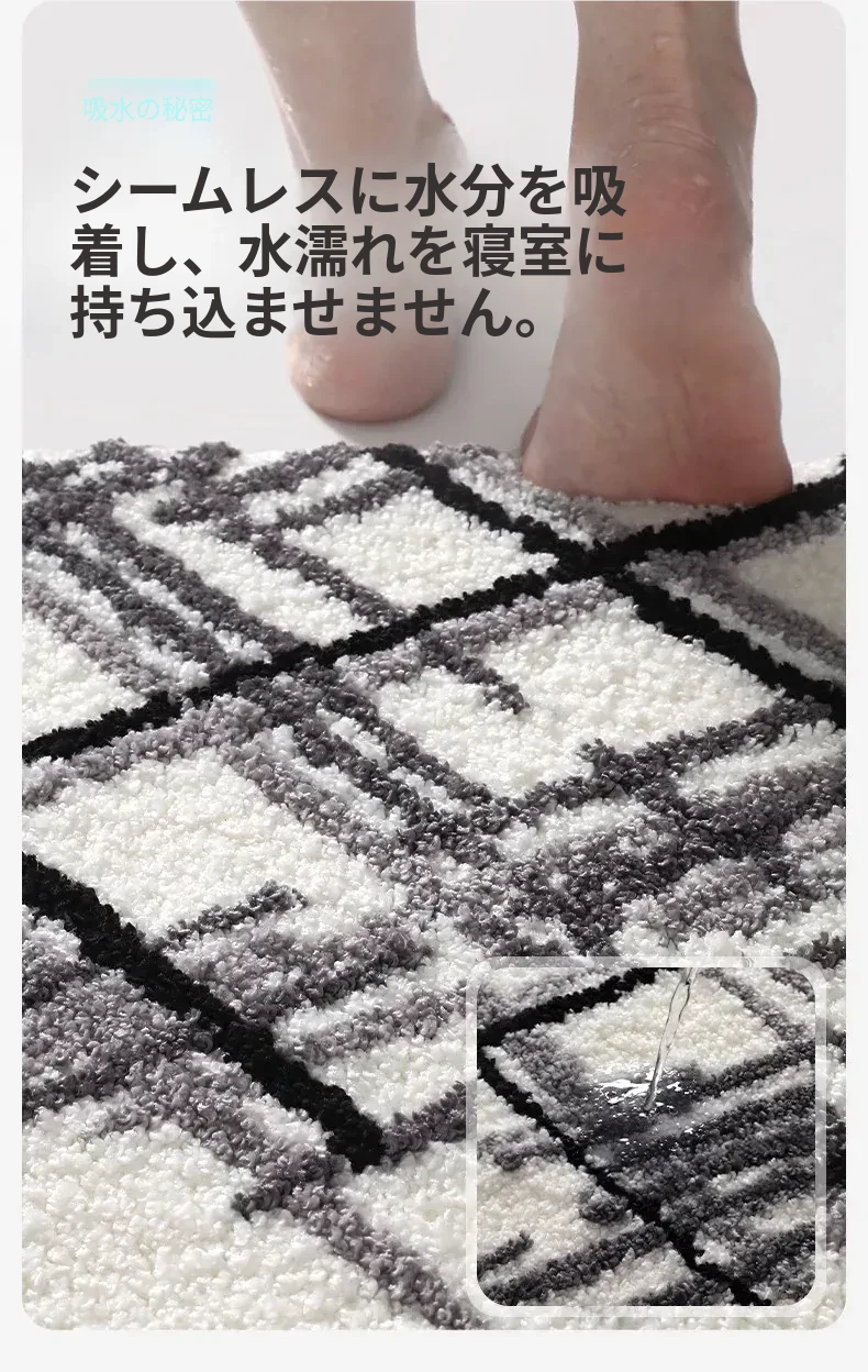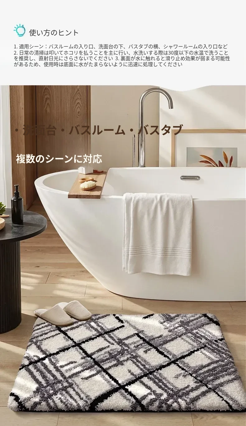 大江バスルーム吸水マット - 植毛デザインのシンプルで厚手なトイレマット!滑り止め機能付きで、洗面所やトイレに最適な快適な足元を実現します。おしゃれで実用的な衛生マット!