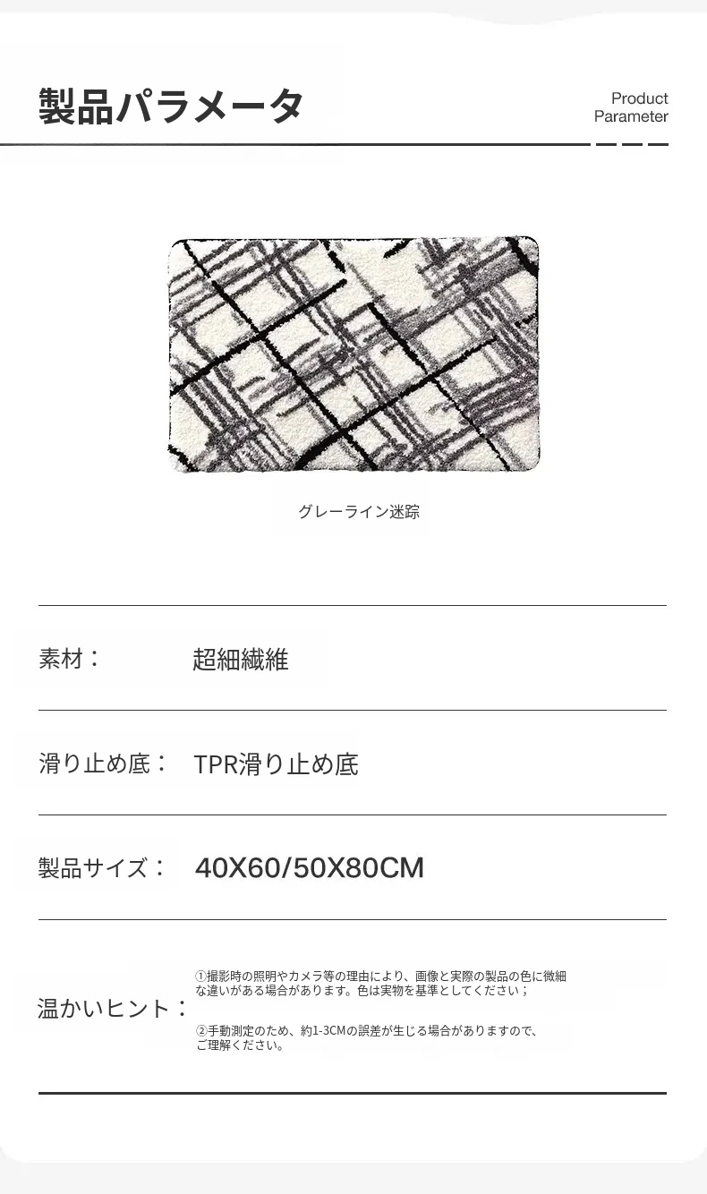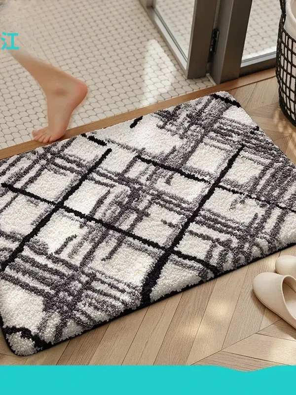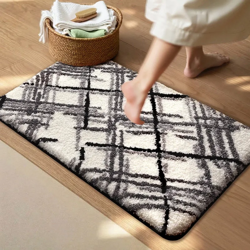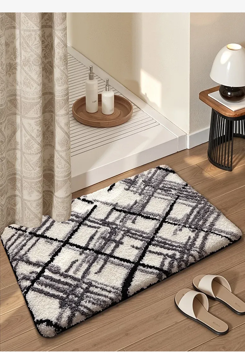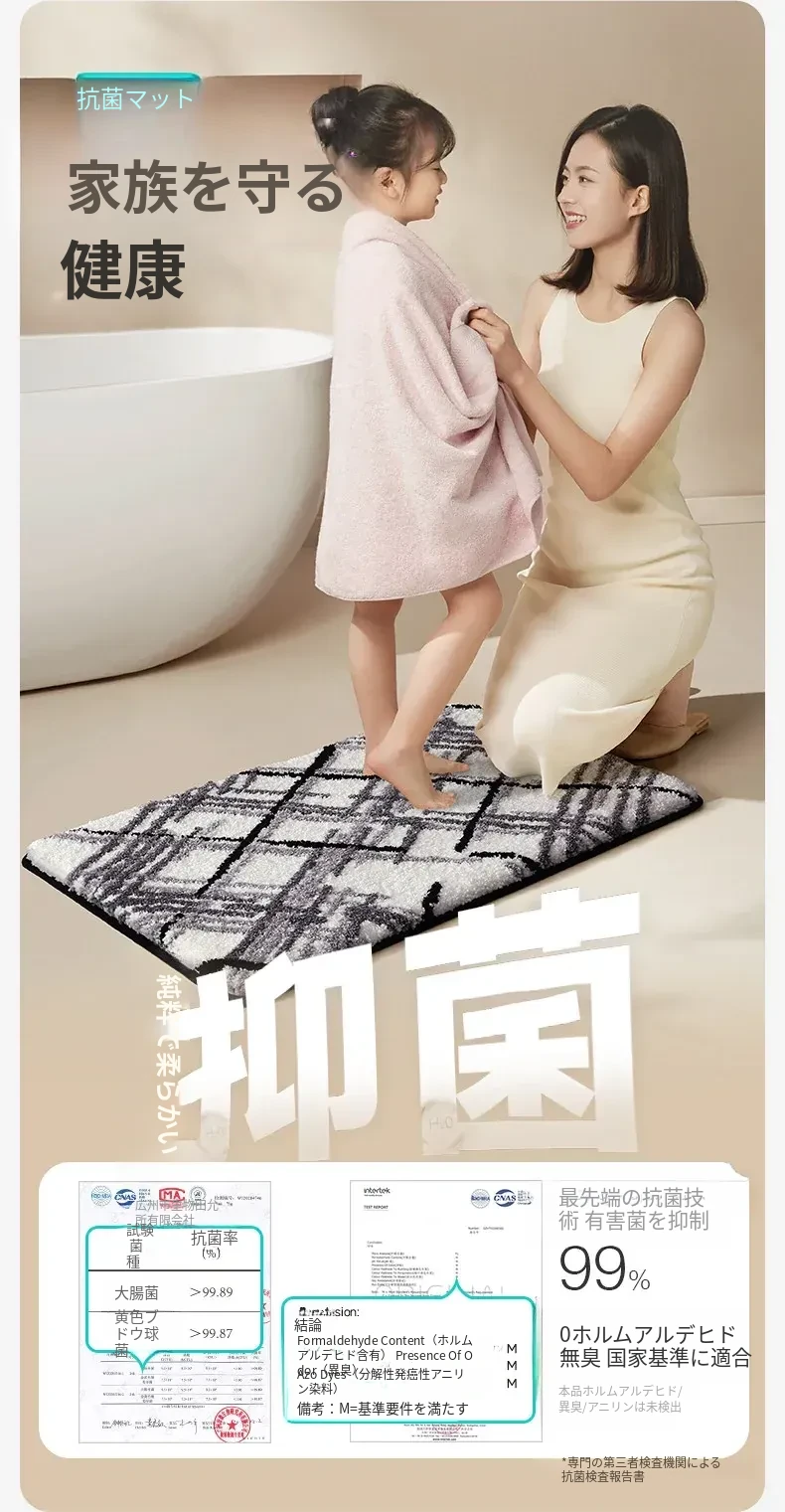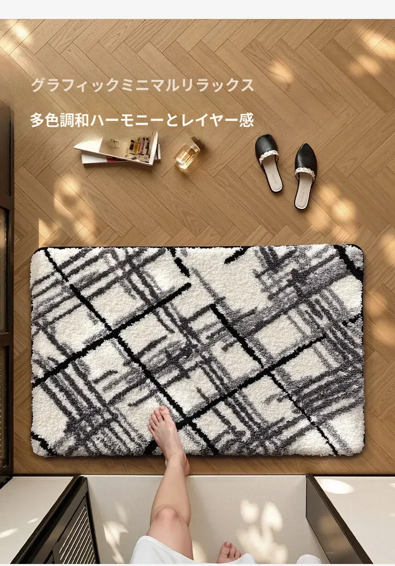 大江バスルーム吸水マット - 植毛デザインのシンプルで厚手なトイレマット!滑り止め機能付きで、洗面所やトイレに最適な快適な足元を実現します。おしゃれで実用的な衛生マット!
