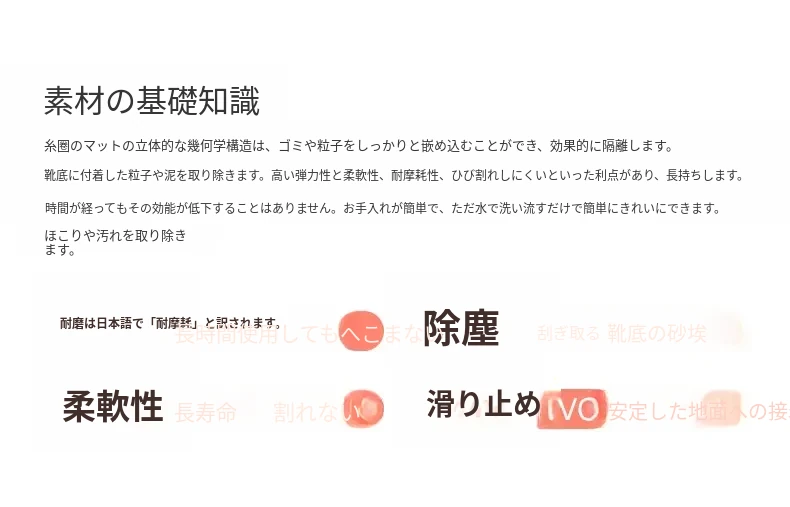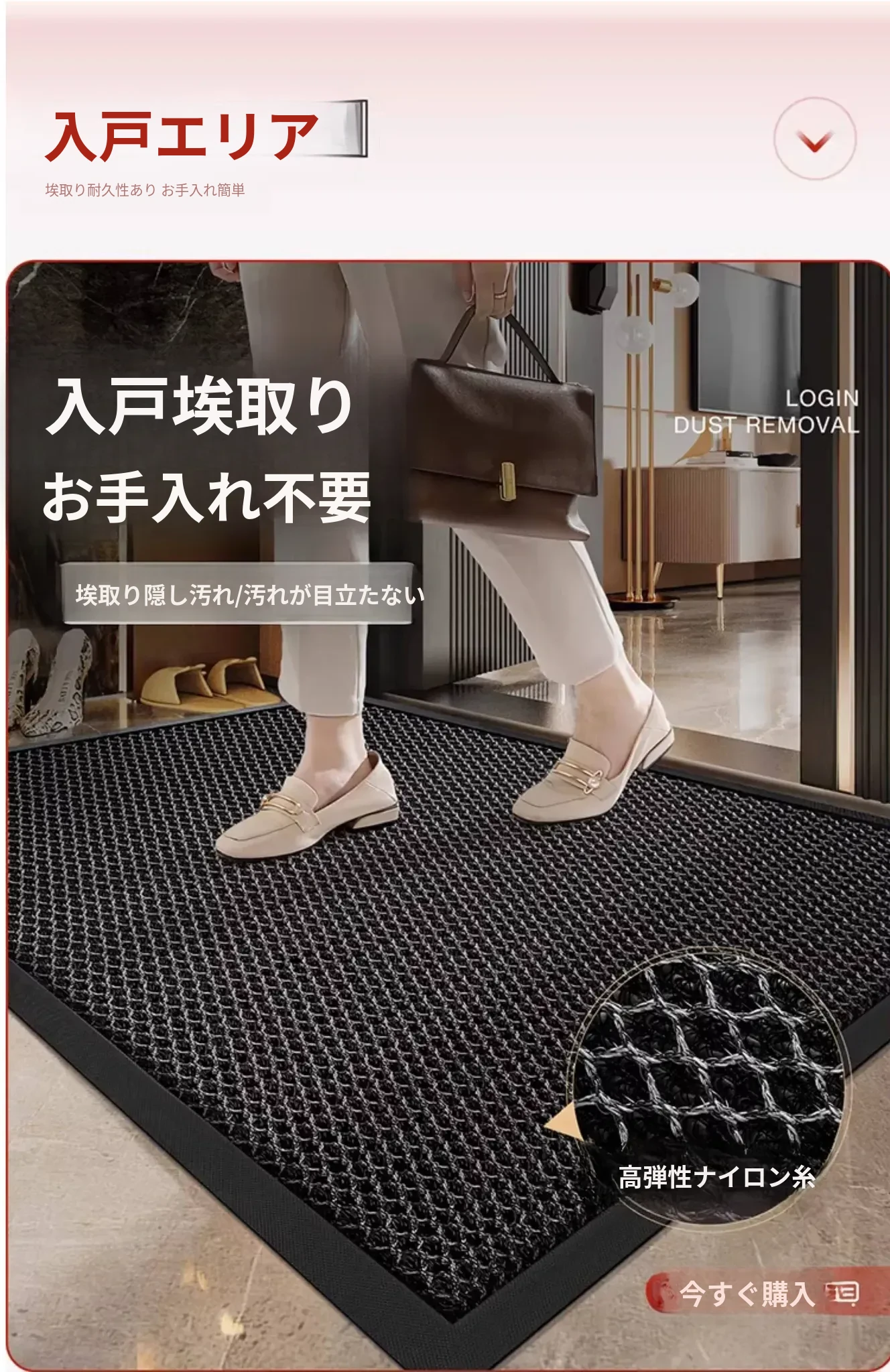 大江の玄関マット - 家庭用・屋外用の全敷きフロアマットで、玄関や庭の入口を華やかに演出!滑り止め設計で安全性もバッチリ。おしゃれで機能的な足元のアクセントをお楽しみください!